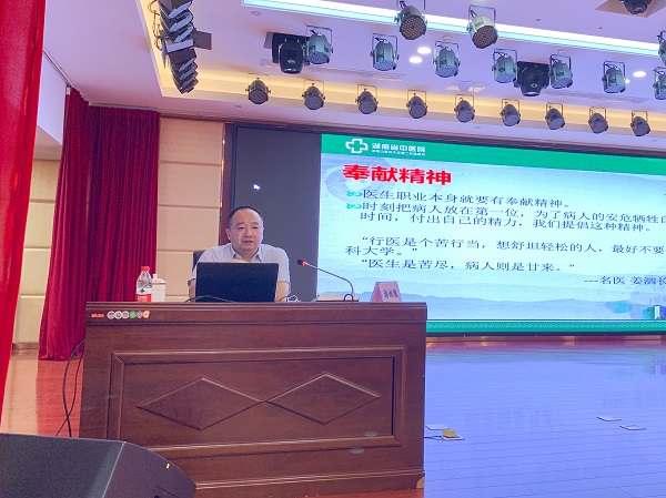 入院教育期间,主要从党风廉政建设、医德医风教育、如何做一名合格的医师、医疗质量与医疗安全、医院感染管理知识、医院质控知识、医保知识、医院核心制度、规范化培训相关制度几方面,由医院纪委书记杨彤、副院长游柏稳、医疗安全办主任梁朝晖、院感科张宇辉、质控科王璇、医保科副科长贺如意、医务部副部长董扬洲、规培办主任杨晖分别就以上内容进行了详细讲解。