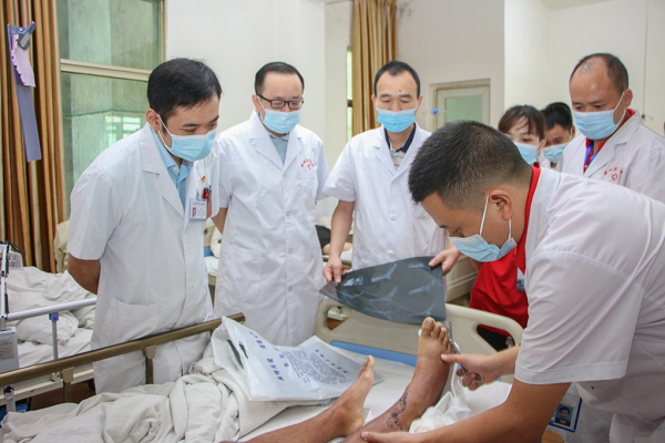 结束病区查房活动后,义诊专家们来不及休息片刻,随即现场开展了跟骨撬拨复位空心钉内固定术等手术指导。