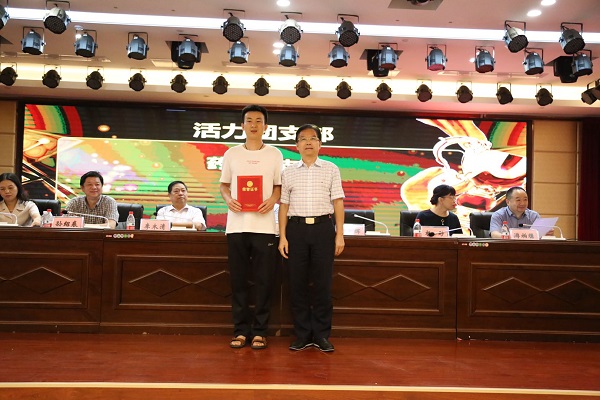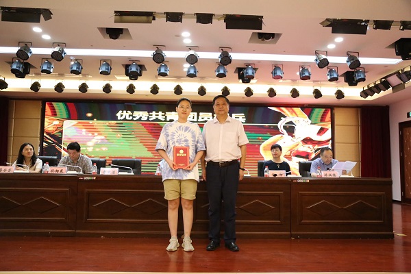 医院副院长孙绍裘为获得2020年优秀共青团员颁奖