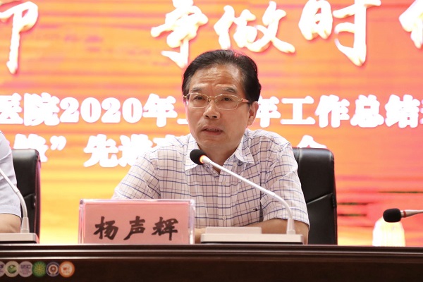 7月30日下午,我院2020年上半年工作总结表彰大会暨“抗疫先锋”先进事迹报告会在外科楼多功能会议厅隆重举行。大学副校长熊辉、医院文化顾问陈清浓应邀出席会议,医院党委班子全体成员、中层干部、党员代表、入党积极分子、发展对象、民主党派代表共300余人参加会议。会议由医院党委书记杨声辉主持。