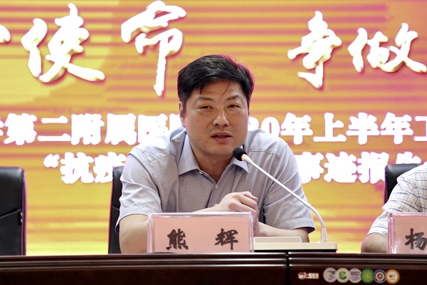 大学副校长熊辉代表校(院)党委向逆行武汉和坚守医院抗疫一线的医护人员致敬,向受表彰的先进集体和先进个人表示热烈的祝贺。他表示,聆听完10位宣讲人的深入宣讲,被先进典型代表身上展现出来的抗疫精神深深感动,他认为,中医附二人不负重托,身先士卒,用实际行动践行医者初心,为人民群众生命安全和身体健康筑起了一道安全可靠的健康防线。同时,他结合医院实际,对医院的建设发展提出了三点希望:一是认清形势,把握大局;二是抓住大势,弯道超车;三是发挥优势,塑造大师。
