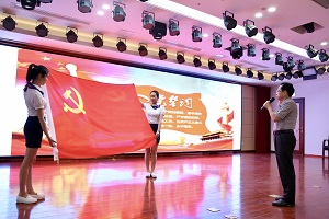“我志愿加入中国共产党……”全体党员端身正意,高举右拳,面对鲜红的党旗庄严宣誓。铿锵有力的誓言,彰显着不变的信念,进一步激励全体党员干部不忘初心,牢记使命,充分发挥先锋模范作用,让党旗在疫情防控斗争的前沿高高飘扬。
