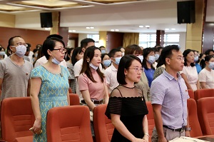 接下来,全体参会人员集体观看了高校党组织战“疫”示范微党课“七一”专讲。在庆祝中国共产党成立99周年的重要时刻,这堂别开生面的专题微党课,是一次特殊的主题党日活动,构筑了一道“红色防火墙”,让党旗始终高高飘扬在疫情防控、返校复学、事业发展全过程全方位,引导大家进一步增强“四个意识”、坚定“四个自信”、做到“两个维护”,激发党支部的活力和创造力。