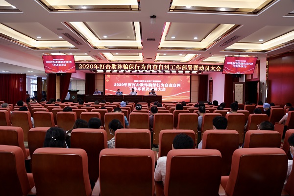 为贯彻落实湖南省及各市县医保局关于打击欺诈骗保行为自查自纠相关工作部署,进一步加强医疗保障基金监管,继续巩固打击欺诈骗保工作成果,宣传解读医疗保障基金监管法律法规与政策规定,坚决捍卫医保基金安全,根据《湖南省医疗保障局关于开展医保经办机构和定点医药机构医保违法违规行为专项治理工作的通知》和长沙市、长沙县《关于在定点医药机构开展欺诈骗保行为自查自纠的通知》的要求,5月14日下午,我院在外科楼25楼多功能会议厅召开了“开展打击欺诈骗保行为自查自纠工作部署及动员大会”,院领导班子成员、全体中层干部、医护人员参加了会议,会议由游柏稳副院长主持。