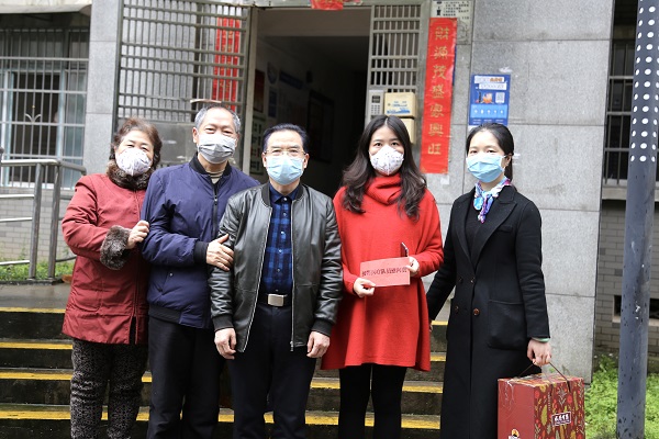2月10日,我院中医内科主任医师毛以林、消化内科副主任医师祁双林、呼吸内科主治医师华光、危急重症医学科主管护师陈琼、蒋霞、周丽凤及护士谢宇雯7名医护人员作为援助湖北国家中医医疗队队员出征武汉并入驻武汉江夏区方舱医院,奋战在阻击疫情的前沿阵地。近日,医院党委书记杨声辉、院长李木清、纪委书记杨彤、副院长蒋谷芬等院领导通过多种形式慰问我院援鄂医疗队成员家属,把关心关怀送到家属身边,为“最美逆行者”们解除后顾之忧,让他们全身心投入疫情防控工作之中。