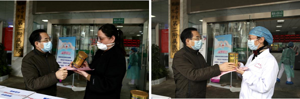 为贯彻落实《国家卫生健康委关于贯彻落实改善一线医务人员工作条件切实关心一线医务人员身心健康若干措施的通知》文件精神,及时转达大学对一线医务人员的殷切慰问,3月2日下午,医院在门诊楼前坪举行爱心物资发放仪式。党委书记杨声辉、院长李木清等院领导将大学、新疆丝路花麒集团为我院抗疫一线医护人员健康助力的驼乳粉全部发放到一线抗疫人员手中,叮嘱他们加强营养保障和自身防护,表达对他们的关爱关怀,同时感谢他们在疫情防控工作中的辛勤付出。