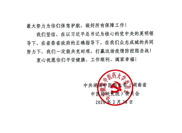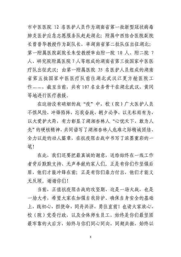 致校(院)奋战在疫情防控一线医护人员及广大家属的慰问信