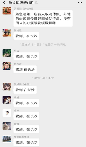 在接夜班时偷拍的照片 护士长在微信群里的工作安排