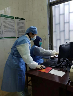 在发热门诊进行督查 护士长摸底全体护士在长情况