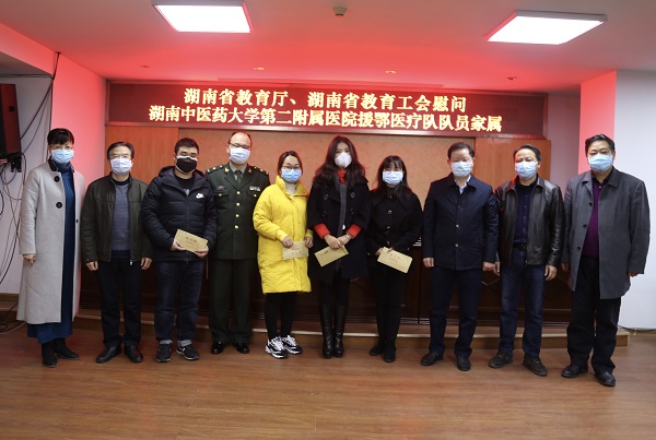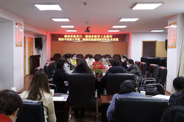 2月19日上午,湖南省教育工会主席高新明一行莅临我院,对我院援鄂医疗队队员家属进行亲切慰问并送上慰问金。
