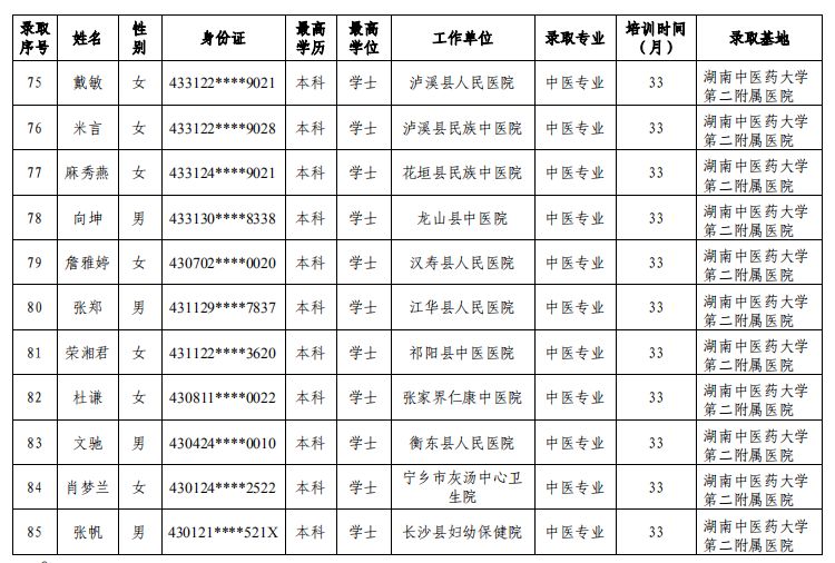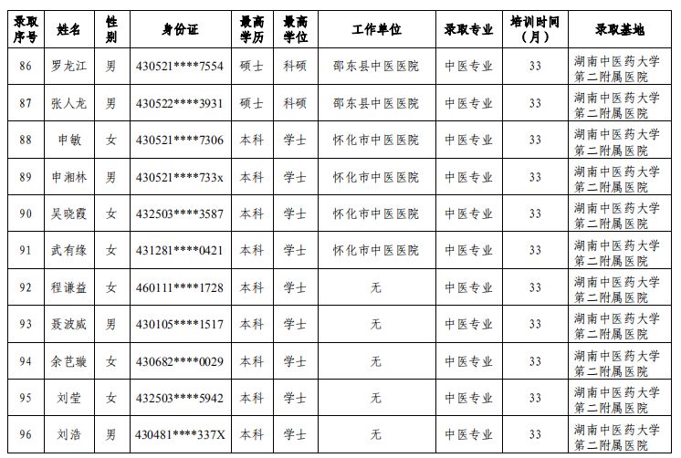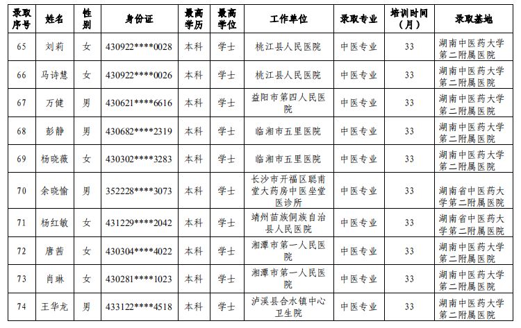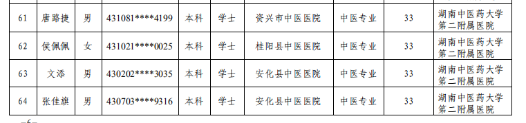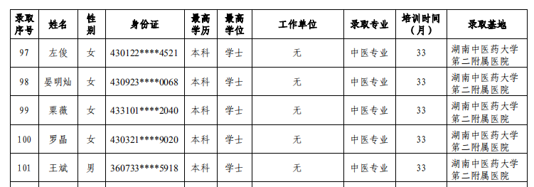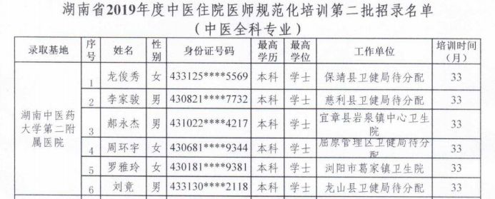 关于公布湖南中医药大学第二附属医院2019年中医住院医师规范化培训录取学员名单及报到事项的通知