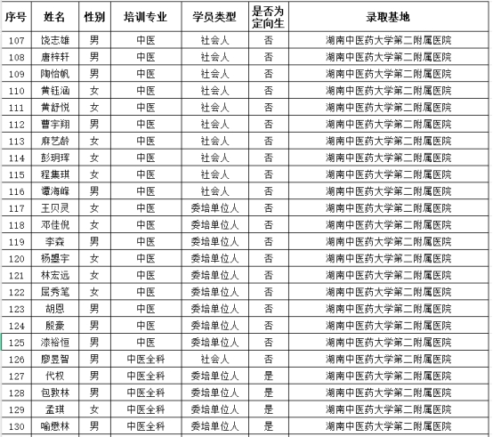 根据湖南省中医药管理局《2025年湖南省中医医师规范化培训招录拟录取名单公示》文件,具体详见湖南省中医医师规范培训管理平台(http://222.240.197.26:6061/pdsci/),我院2025年中医医师规范化培训拟录取学员人数为50人(不含并轨专硕学员),其中:中医45人,中医全科5人。现将拟录取名单予以公示: