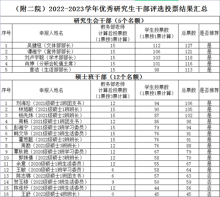 附件:(附二院)2022-2023学年优秀研究生干部评选投票结果汇总