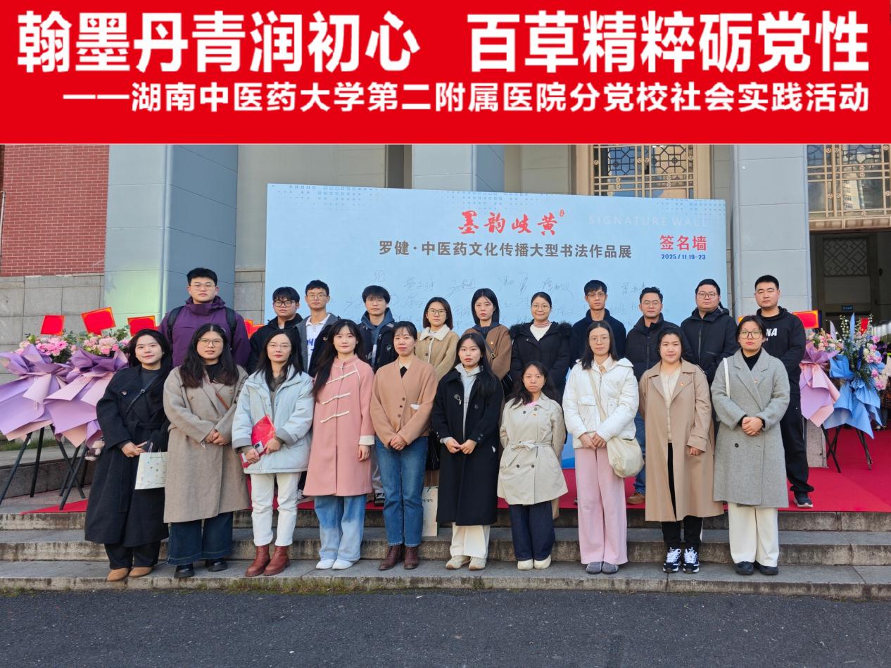 11月19日,湖南中医药大学第二附属医院分党校开展2025年下半年社会实践活动,带领学员前往湖南省展览馆,参观以“墨韵岐黄”为主题的罗健中医药文化传播大型书法作品展。此次活动旨在通过文化浸润增强学员对中医药传统的认同与自信,进一步筑牢信仰根基、强化使命担当。