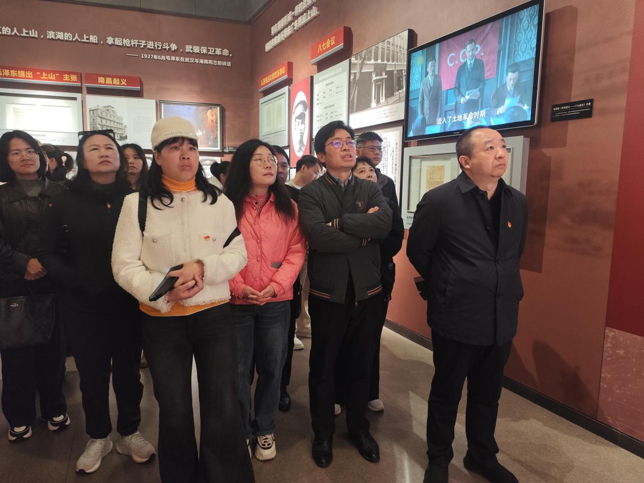 上午,党员们首先抵达文家市秋收起义纪念馆。走进纪念馆,一幅幅泛黄的历史照片、一件件承载着岁月痕迹的革命文物、一个个生动还原的战斗场景,将大家带回了那段烽火连天的革命岁月。在讲解员的带领下,党员们系统回顾了秋收起义的历史背景、艰难历程与重大意义,深刻感悟到革命先辈们为了民族独立和人民解放,不畏牺牲、英勇斗争的崇高精神。