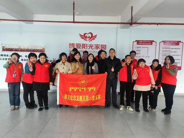 第二场活动于3月2日上午在开福区博爱阳光家园举行,机关第二党支部书记朱明芳带领2名支委开展“党建助残 学习雷锋关爱残疾人”慰问活动。朱明芳书记与博爱阳光家园负责人刘晓深入沟通了解助残机构的现状及愁盼的问题,未来机关第二党支部计划持续开展中医药特色的慰问帮扶活动。