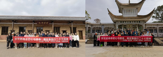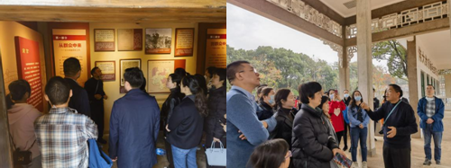 老党员章资超同志带领外科第一党支部、外科第二党支部、肛肠党支部的党员们先后参观了“忠子工程”武塘纪念亭、春华镇抛砖屋场。