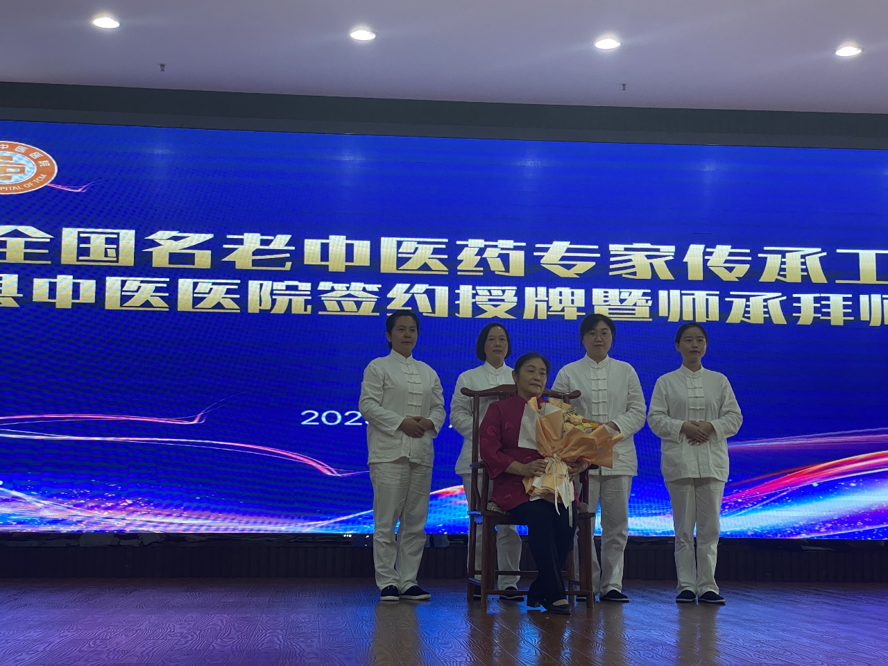 县委常委、常务副县长廖江华出席仪式并致辞。湖南中医药大学第二附属医院党委书记杨声辉与石门县中医医院代表签约并授牌。叶丹丹、鲁健、曾玲、杨辉四位传承弟子分别向王萍教授呈拜师贴、呈敬师礼茶、行拜师礼、诵拜师贴。