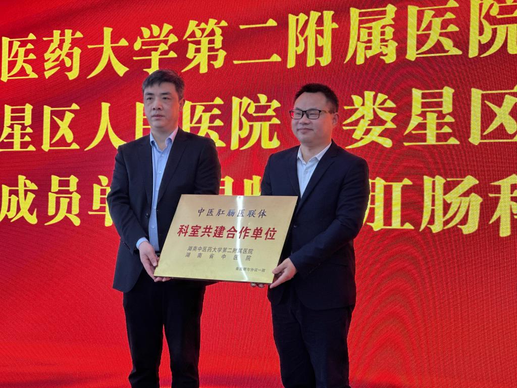 随后,我院院长王国佐为娄星区人民医院授予“中医肛肠医联体科室共建合作单位”牌匾。