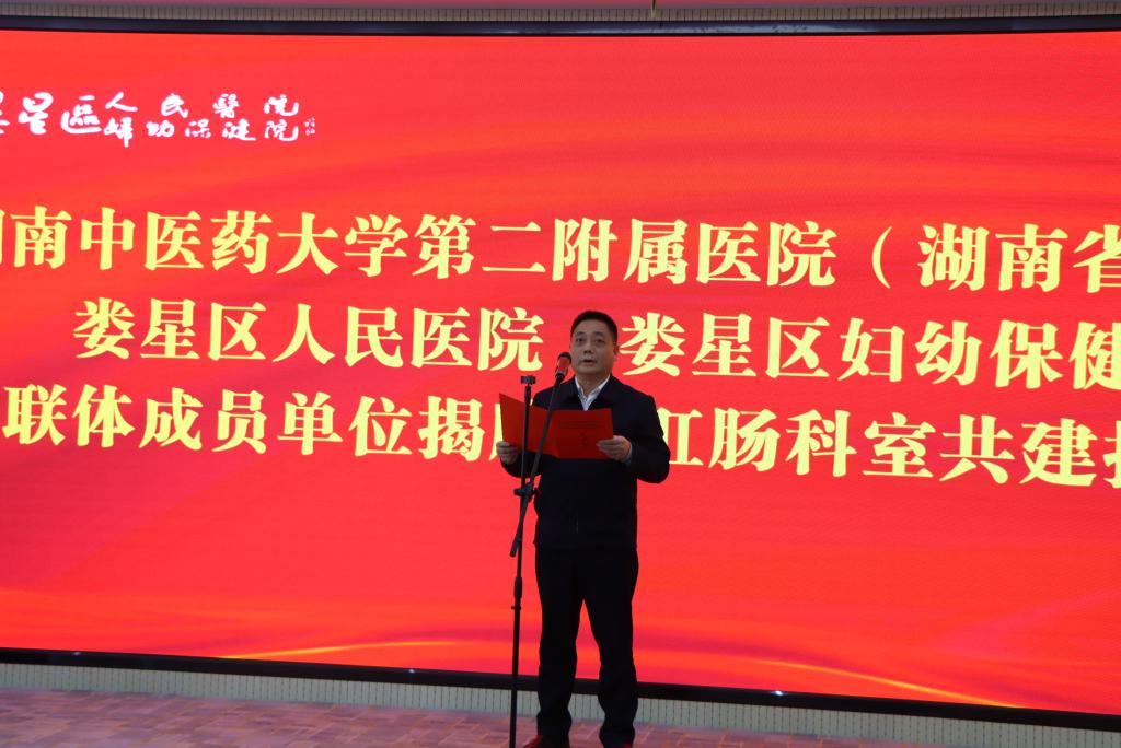 娄底市卫生健康委员会党组成员、副主任龙正雄表示,湖南中医药大学第二附属医院是省内知名的大型三甲医院,在肛肠疾病诊疗方面走在全省前列。娄星区人民医院是娄星区人民政府唯一一家政府主办的二甲综合医院,正处在提质升级的关键阶段,迫切需要得到省级医院的帮扶指导。希望双方联盟后深化全面合作,打造事业联动发展新优势;突出人才培育,注入医院持续发展新动能;把握能力提升,力促学科集群发展新突破。娄星区人民医院不仅要做大、做强、做精肛肠专科,同时还要着力培育一批具有区域影响力和市场竞争力的特色学科。