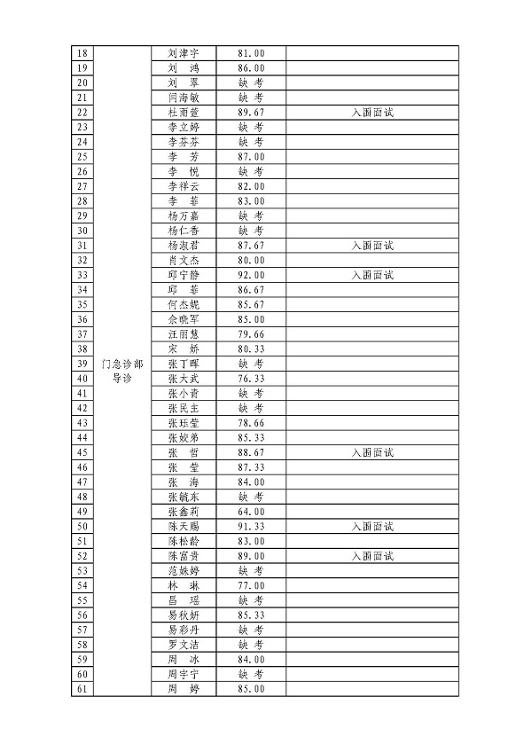 附件:湖南中医药大学第二附属医院2021年公开招聘院前急救医师和门急诊部导诊岗位工作人员笔试和试班成绩一览表