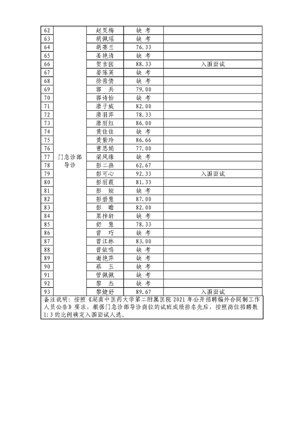 湖南中医药大学第二附属医院2021年公开招聘院前急救医师和门急诊部导诊岗位工作人员笔试和试班成绩公示
