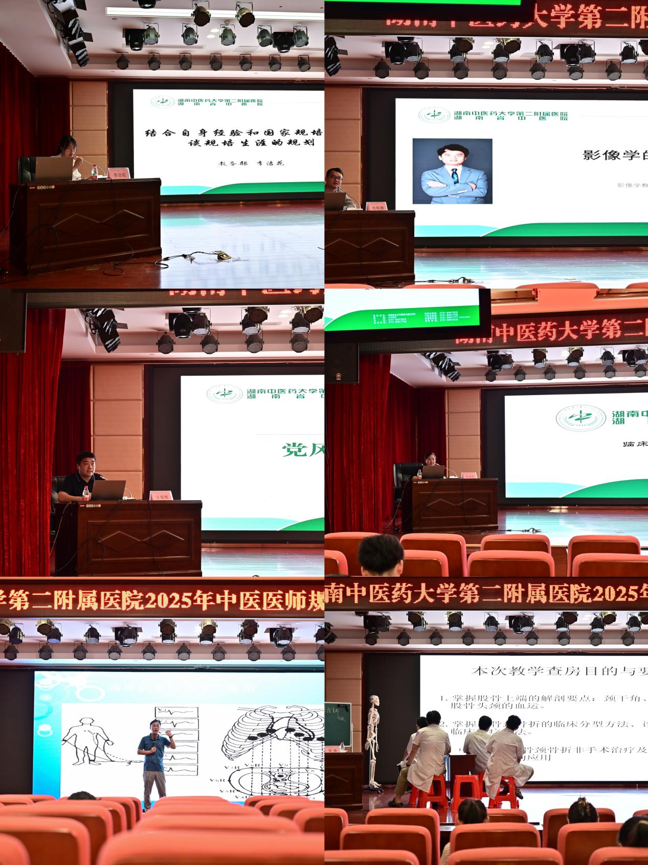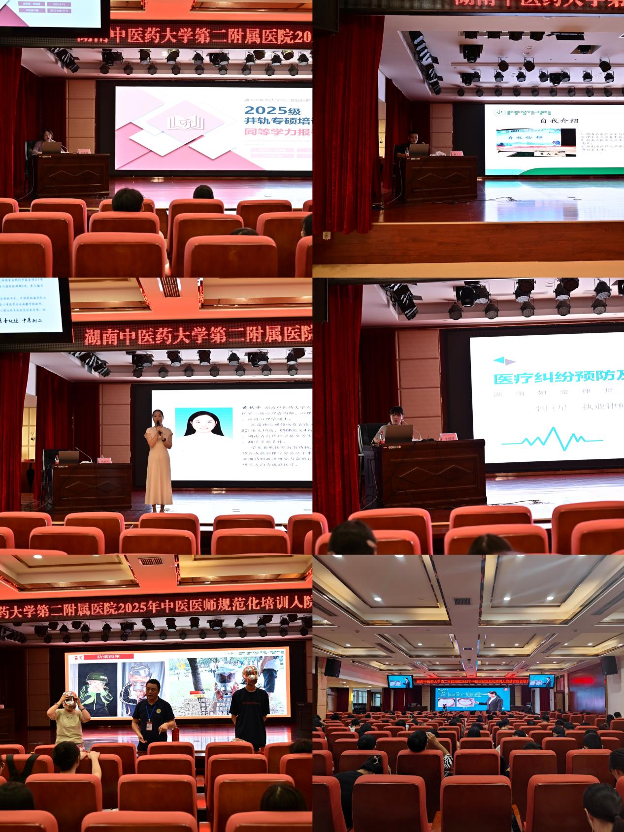 理论课程设计科学、内容扎实,涵盖政策法规、临床基础、医德医风、医院管理等多个方面。医院纪委书记王爱辉以“扣好职业生涯的第一粒扣子——与规培生谈廉洁从业与医德修养”为主题,为学员们上了一堂深刻的廉政教育课。他结合医疗卫生行业特点,深入浅出地讲解了廉洁行医的重要性,引导规培生在职业生涯起步阶段就树立正确的价值观,筑牢拒腐防变的思想防线。湖南中医药大学心理系讲师、国家二级心理咨询师、心理治疗师黄秋平为学员们带来了一场心理健康教育盛宴。她以专业的心理学知识和丰富的咨询经验,帮助学员们掌握情绪管理技巧,提升心理调适能力,为即将开始的临床工作做好心理准备。专业律师李巨星则从法律实务角度,详细讲解了医疗纠纷的预防与处理。她结合真实案例,分析了医疗实践中常见的法律风险点,为学员们提供了实用的法律知识储备,增强了大家的医疗安全意识和风险防范能力。教务部副部长董大立带来的“医学人文与沟通技巧”专题课程,从医患沟通的艺术入手,深入浅出地讲解了如何建立良好的医患关系,助力学员全面提升职业素养;放射影像科肖铭湘、心血管内科主任熊向晖、医学检验中心胡月子老师分别就影像学、心电图结果判读、检验标本采集与结果判读进行了系统讲解;教务部李洁花以“规培生涯规划”为主题,结合国家政策与个人经验,为学员指明规培方向;医院感染管理、中医病历书写与病案首页填写规范、医疗核心制度解读、规培材料填写、消防安全等实用课程也依次开展,帮助学员尽快熟悉临床工作流程与规范。